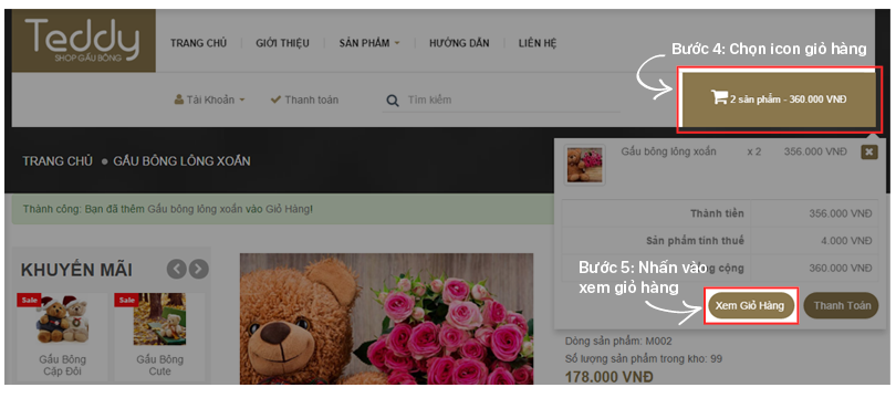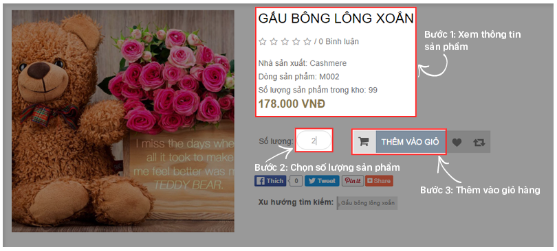 Quý khách có thể thao tác đặt hàng theo các bước sau